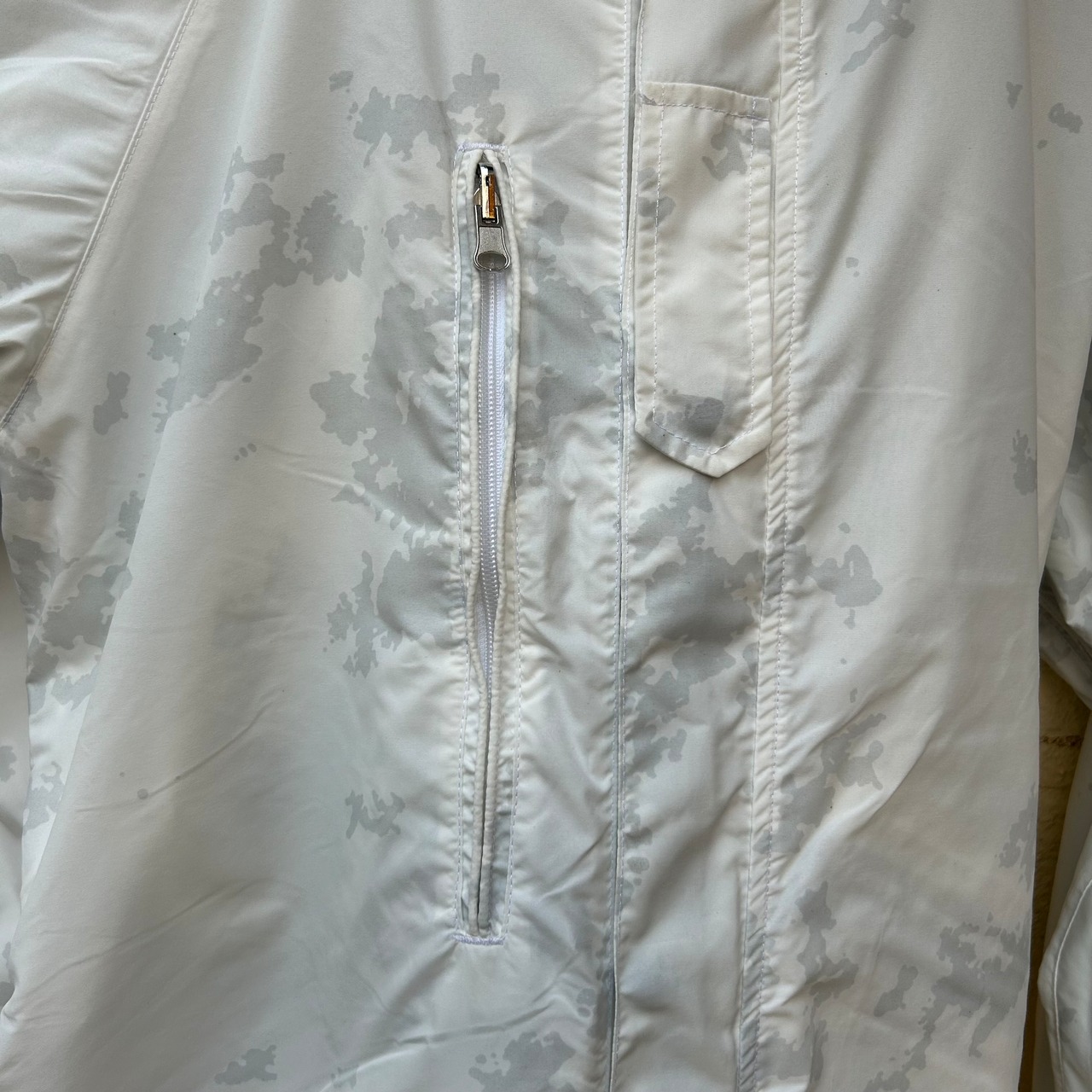 表地にはベジタトカモ、裏地には北極迷彩のような意味で呼ばれるスノーカモが使用されています。