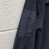 スタンドカラーが風の入りにくいデザインで、肘には補強が施されています。肩付近にはコットンや樹脂製の様々な仕様のパーツが付属しているのもこのジャケットの特徴です。