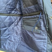外側のフラップポケットは、中のジャケットに手を入れるための貫通ポケットで、サイドのジップポケットは物を入れられるようになっています。 内ポケットは左右の胸に付いています。