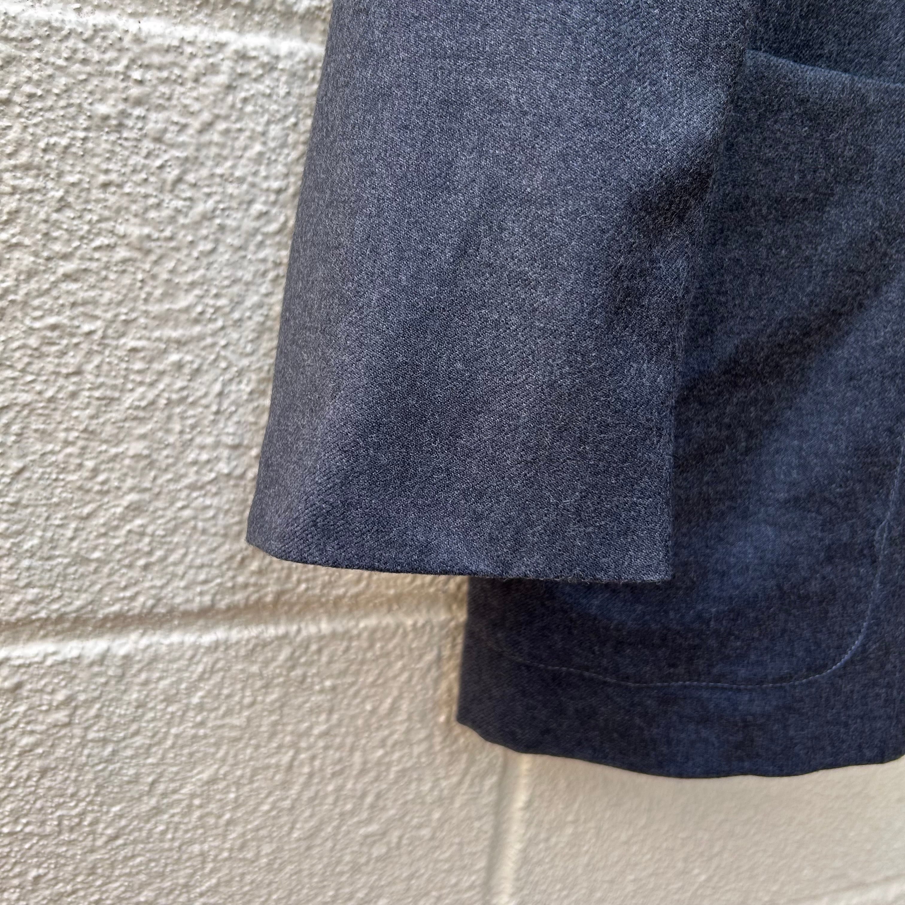 素材はウール混紡のサージ系生地で、光沢を抑えた表情。カラーは落ち着きのあるグレーが様々なアイテムとの相性もよく、ミリタリーアイテムでありながら現代のスタイルにも自然に馴染みます。