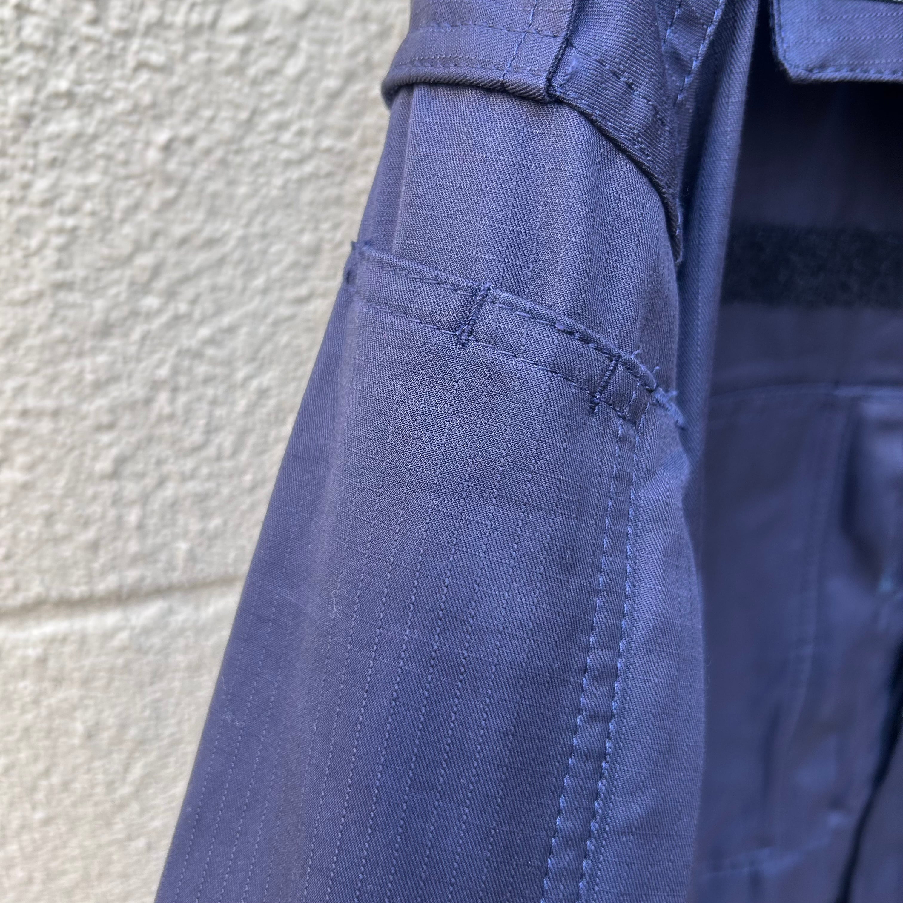 胸と腕に付いているワッペンはマジックテープ式のため、着脱が可能です。生地は薄手のリップストップ地です。