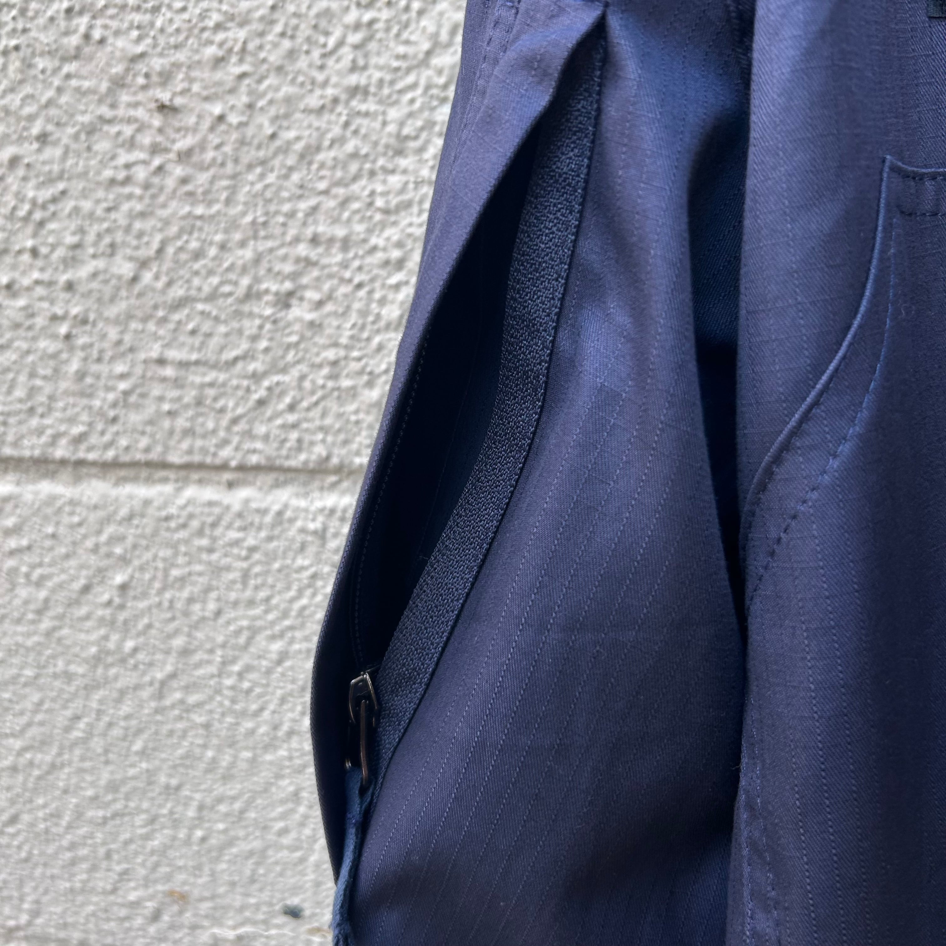 ジャケットの裾はパンツの中にたくし込む前提でデザインされているため、ややタイトめのシルエットとなっています。