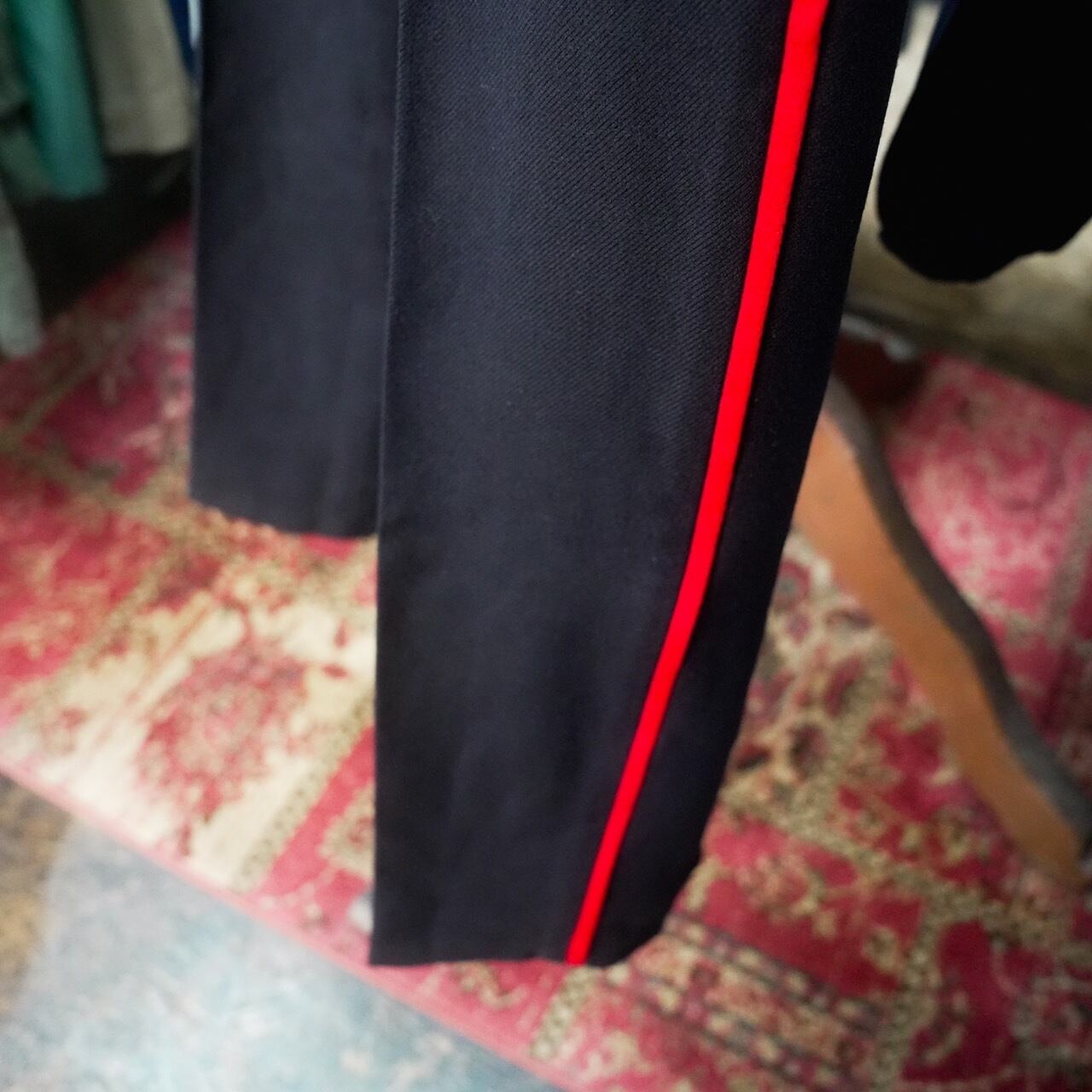 バッキンガム宮殿の衛兵交代式等で着られるパンツです。他にも軍のパレードで行進する近衛兵やブラスバンドが履くパンツなど用途は様々。