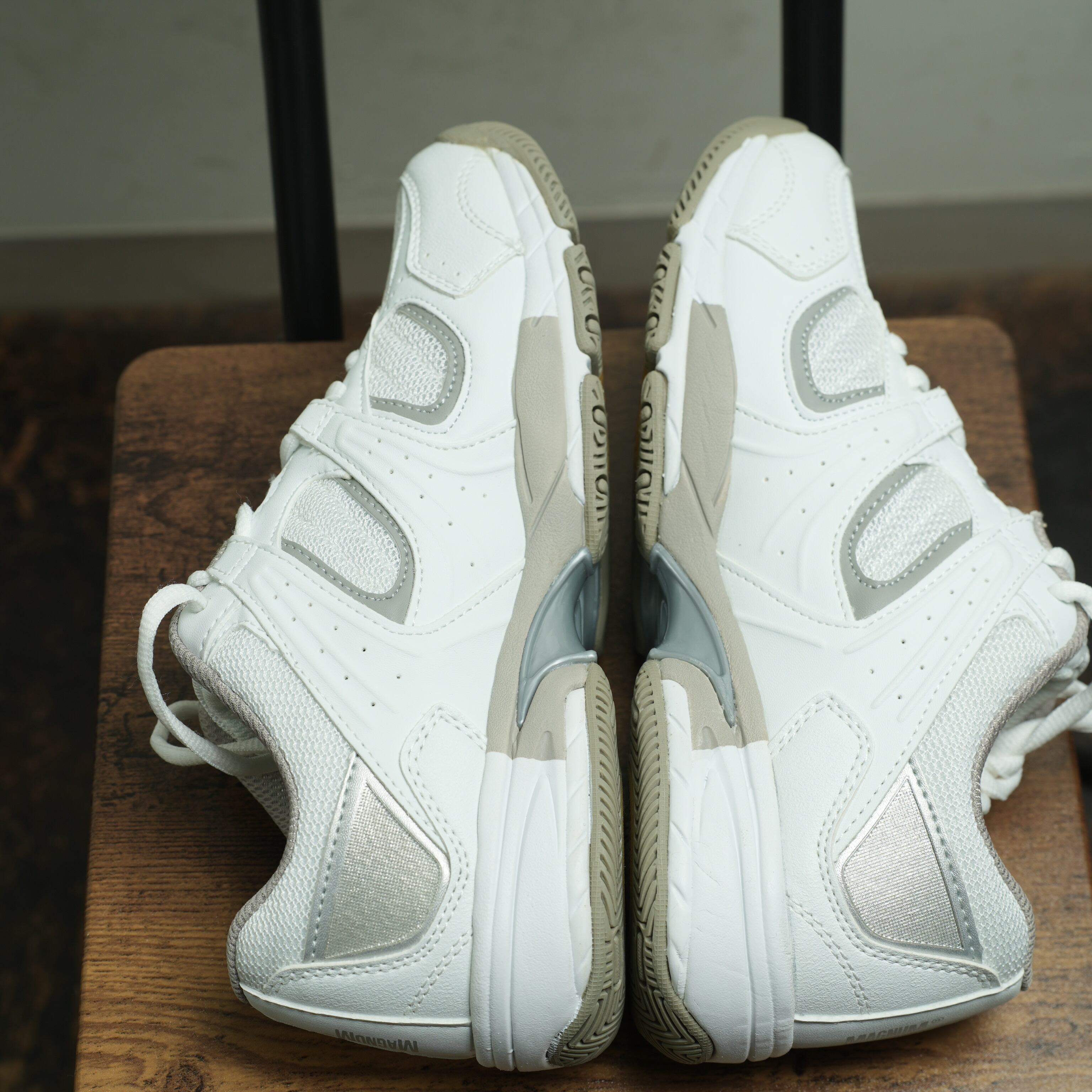 イギリス軍使用のHI-TEC MAGNUM製トレーニングシューズです。室内用のトレーニングシューズでノンマーキングソールが使われています。ノンマーキングとは、アウトソールの色や傷が床についてしまうのを防ぐ機能で、アウトソールにNon-Markingの表記があります。通気性の良いメッシュパネルと取り外し可能なインソールを採用しており、激しいトレーニングでも快適な履き心地を提供するスニーカーです。