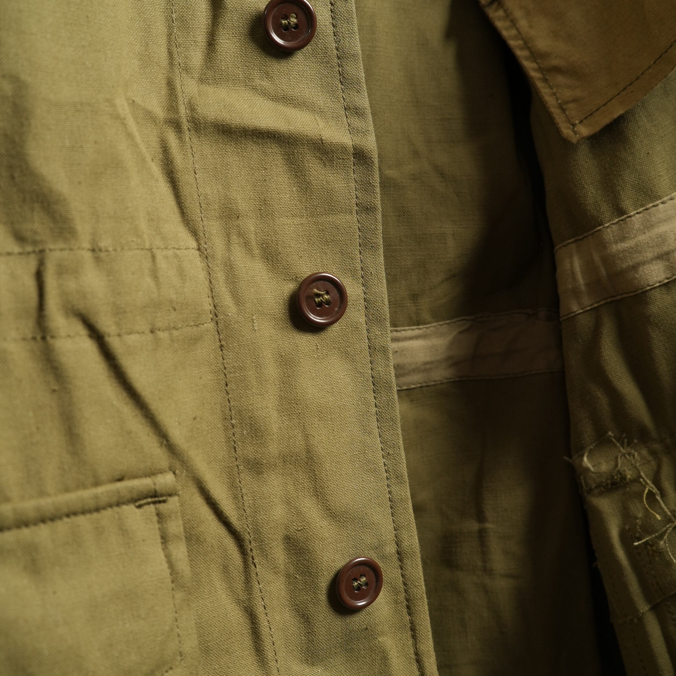 生地は派遣地の気候に対応した薄手の平織り(ホップサック)素材を採用したイレギュラー仕様になる非常に珍しいモデルです。前期のツイルよりも薄手で軽く、非常に 着やすい1枚です。