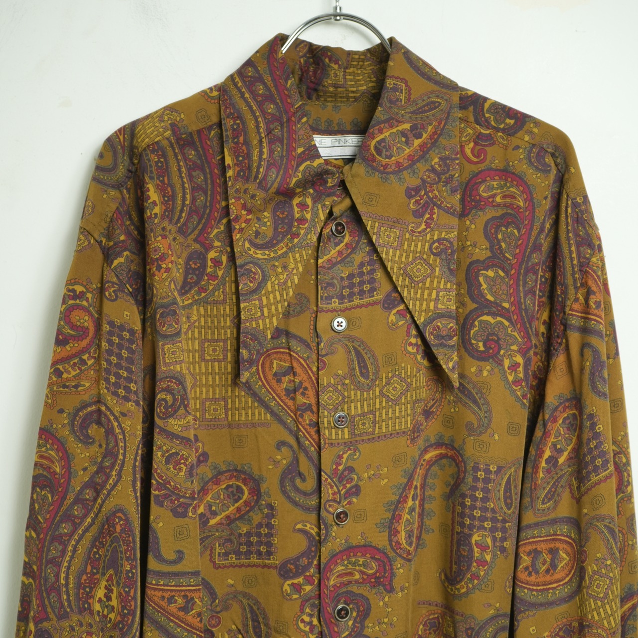大柄のペイズリーとロングポイントのレギュラーカラーがエスニックなシャツ。