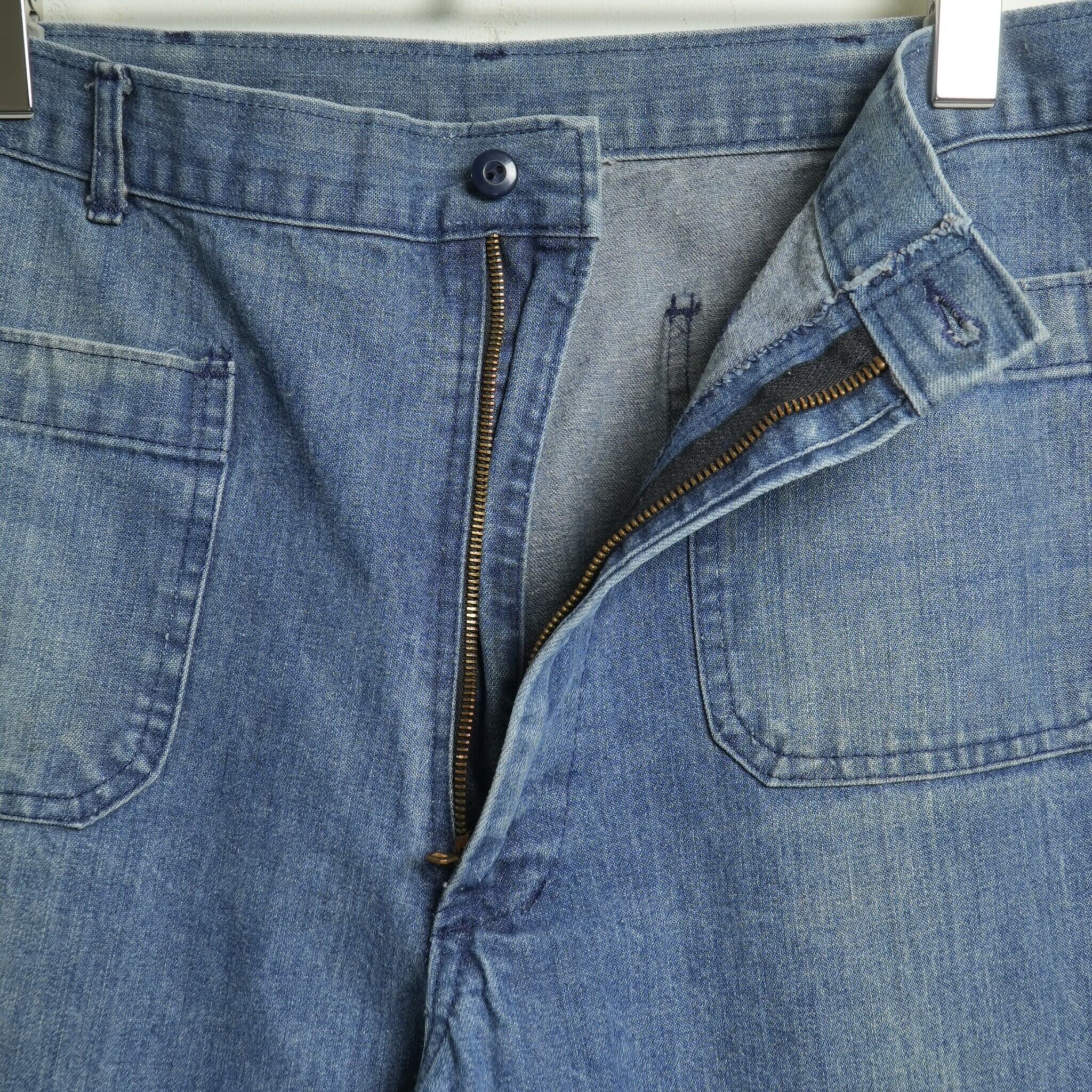 アメリカ海軍にて採用され、主に作業着として用いられていたユーティリティーデニムパンツ。 ライトオンスデニム地が使用されています。イン・アウトシームはダブルステッチで、裾はフレアのデザインです。
