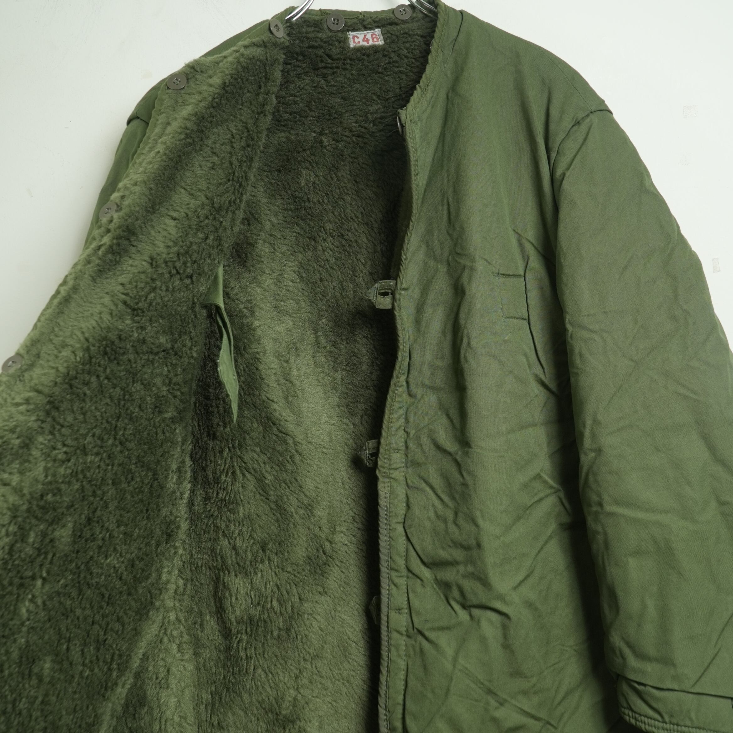 スウェーデン軍のM-59 ライナージャケットです。表地はナチュラルな風合いでシャリ感のあるコットン生地が使用されており、裏地は保温性の高いボアフリース仕様。リバーシブルでの着用も可能で、これ一枚で冬のメインアウターとして非常に実用的です。ライナージャケットならではの簡素なデザインのボディーは、ループ留めのボタンが程よくクラシカルな雰囲気を漂わせていて、ミリタリーらしい深みのあるオリーブカラーとミニマルなデザインが幅広いコーディネートに活躍してくれます。