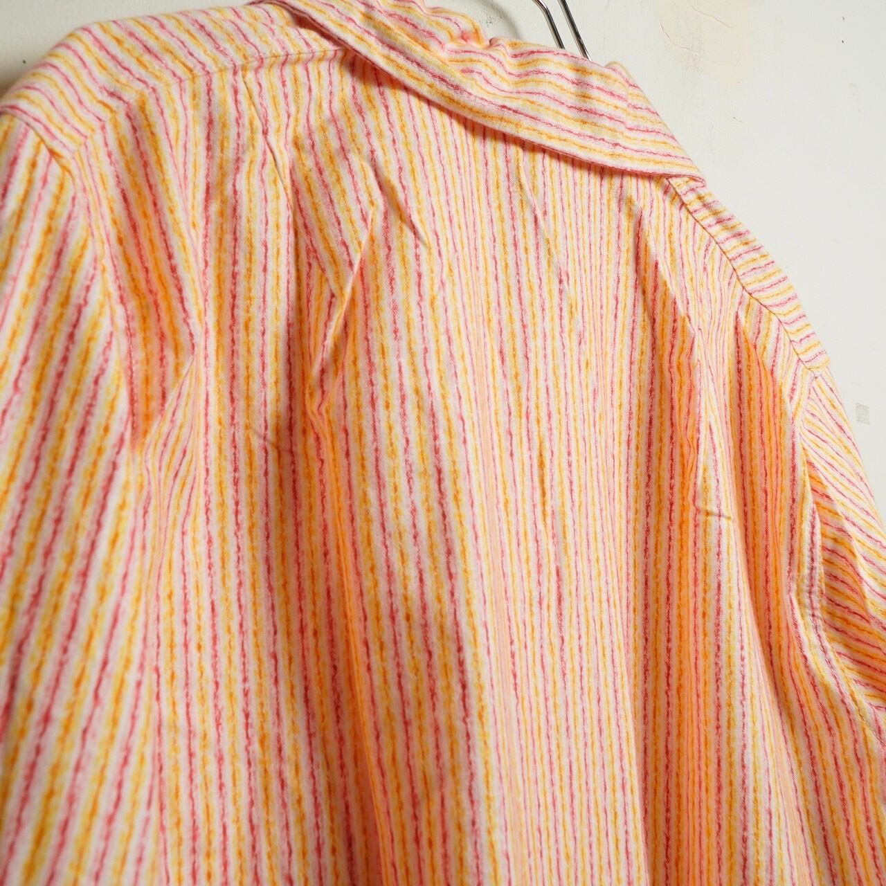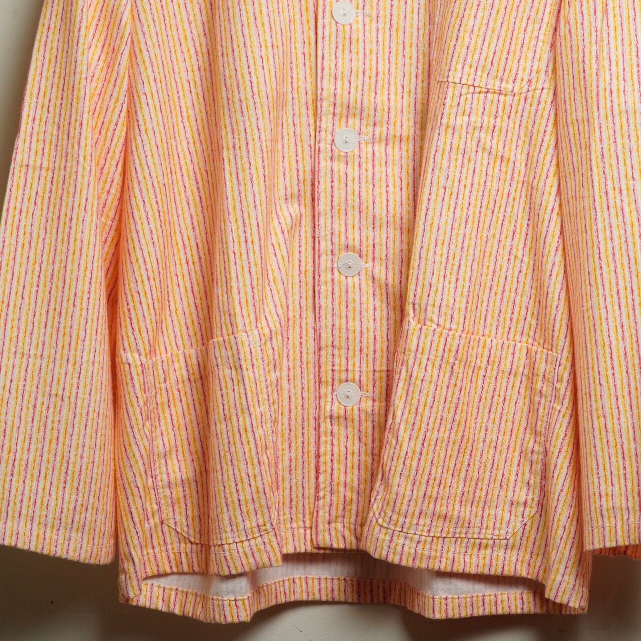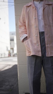 本来のナイトウェアとしてゆったりと着れるシルエットに、オープンカラーのボタン留めの前立てと裾のパッチポケット。