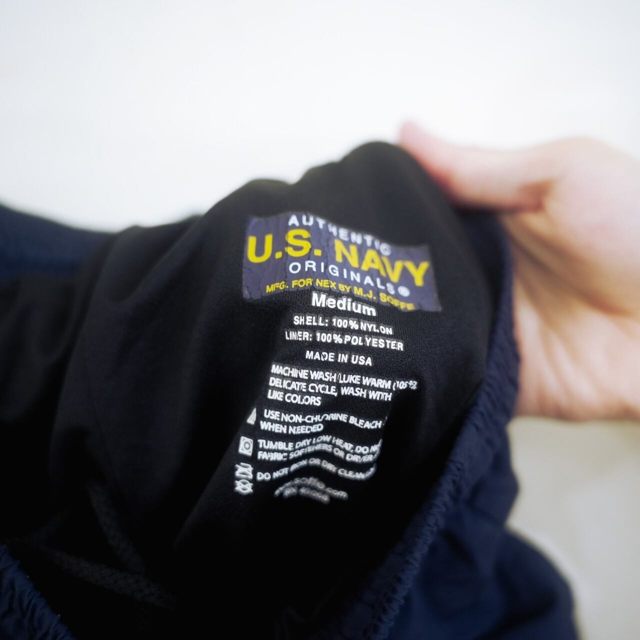 アメリカ海軍のトレーニング用ナイロンショーツです。こちらはSOFFE製で、素材は速乾性が高くサラっとした肌触りのナイロン素材で快適な履き心地です。内側は抗菌のポリライナーが施され、水着としても使えます。ウエストはゴム+ドローコードのイージー仕様。両サイドのポケットに加え、内側の隠しポケットは車やロッカーの鍵を入れるのに便利です。U.S.NAVY ORIGINALS BY M.J.SOFFEと記されたプリントタグが米海軍正式採用の証です。アメリカ国内工場で生産されたこだわりのアイテムで、MADE IN USA。左裾のリフレクターロゴが程良いアクセントになっており、普段着からレジャーまで幅広くお使い頂けます。