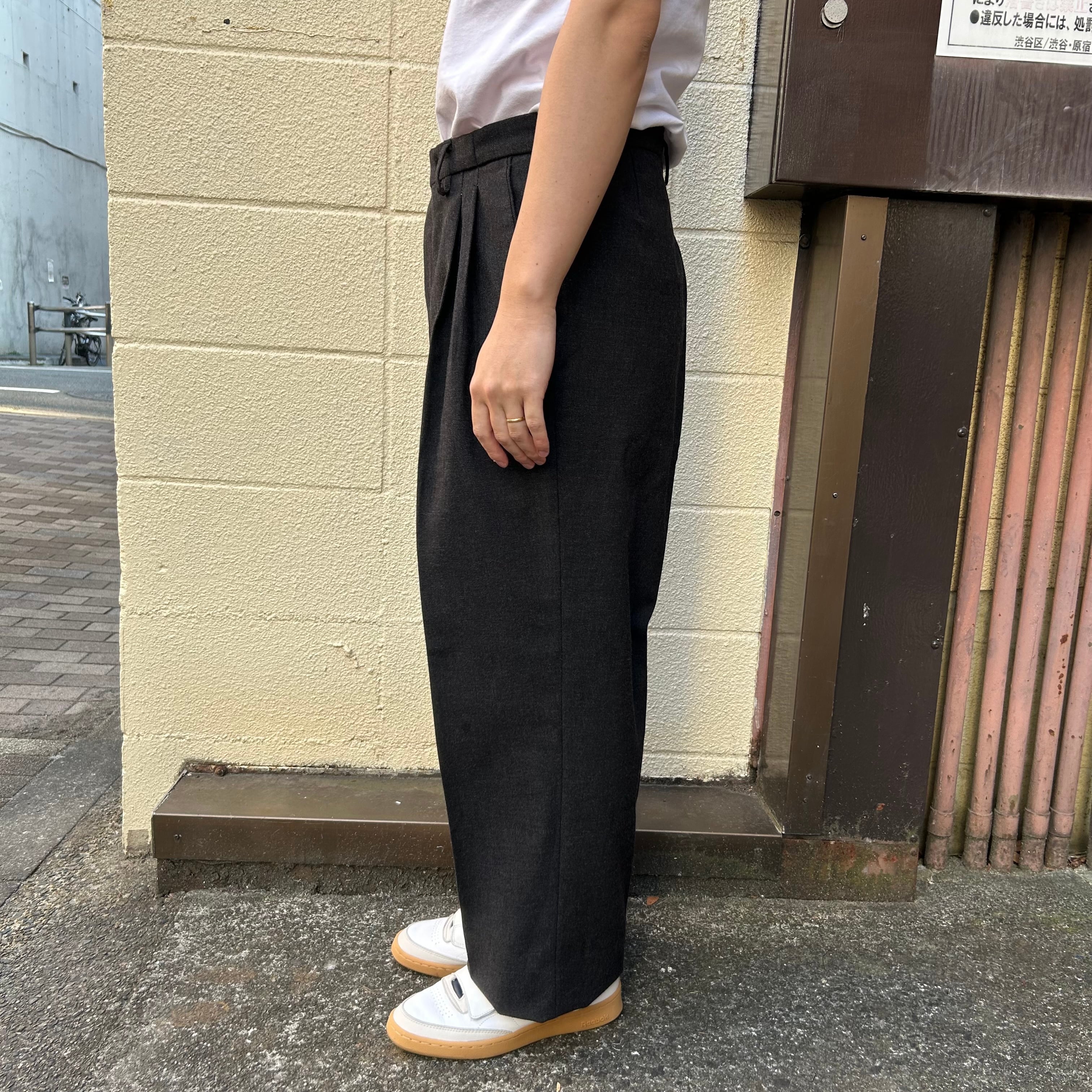 色味はチャコールグレーで上品な色合いにワンタック仕上げになっており、お尻回りにゆとりも持たせつつ、綺麗なシルエットく崩さない仕様になっています。