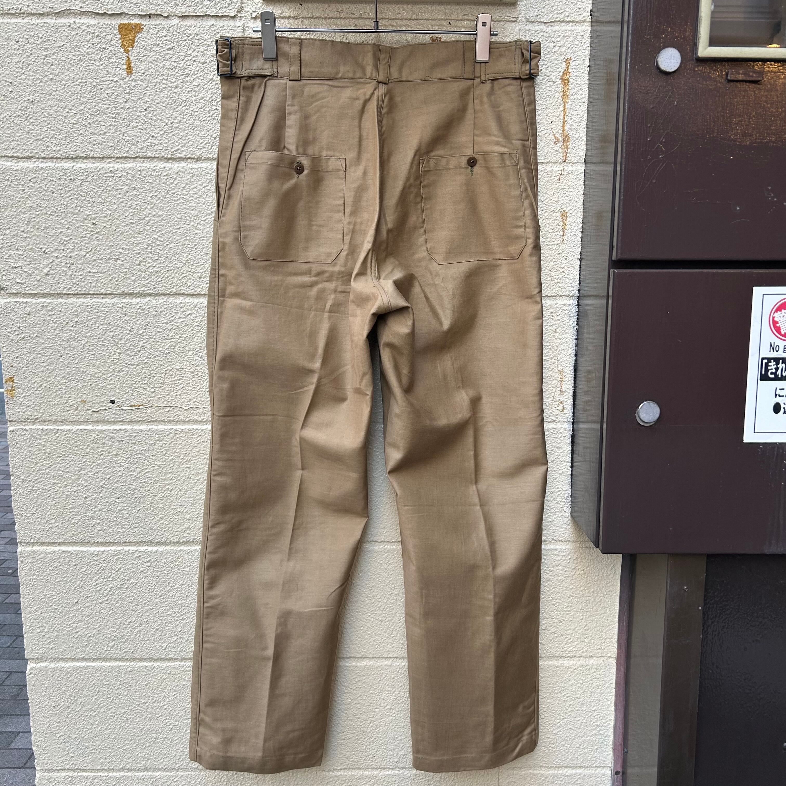 ウエストのサイドには金属製バックルのアジャスターが付属していますので10cm程の調節が可能です。両サイドにスラッシュポケットと、2箇所のバックポケットが備わっています。