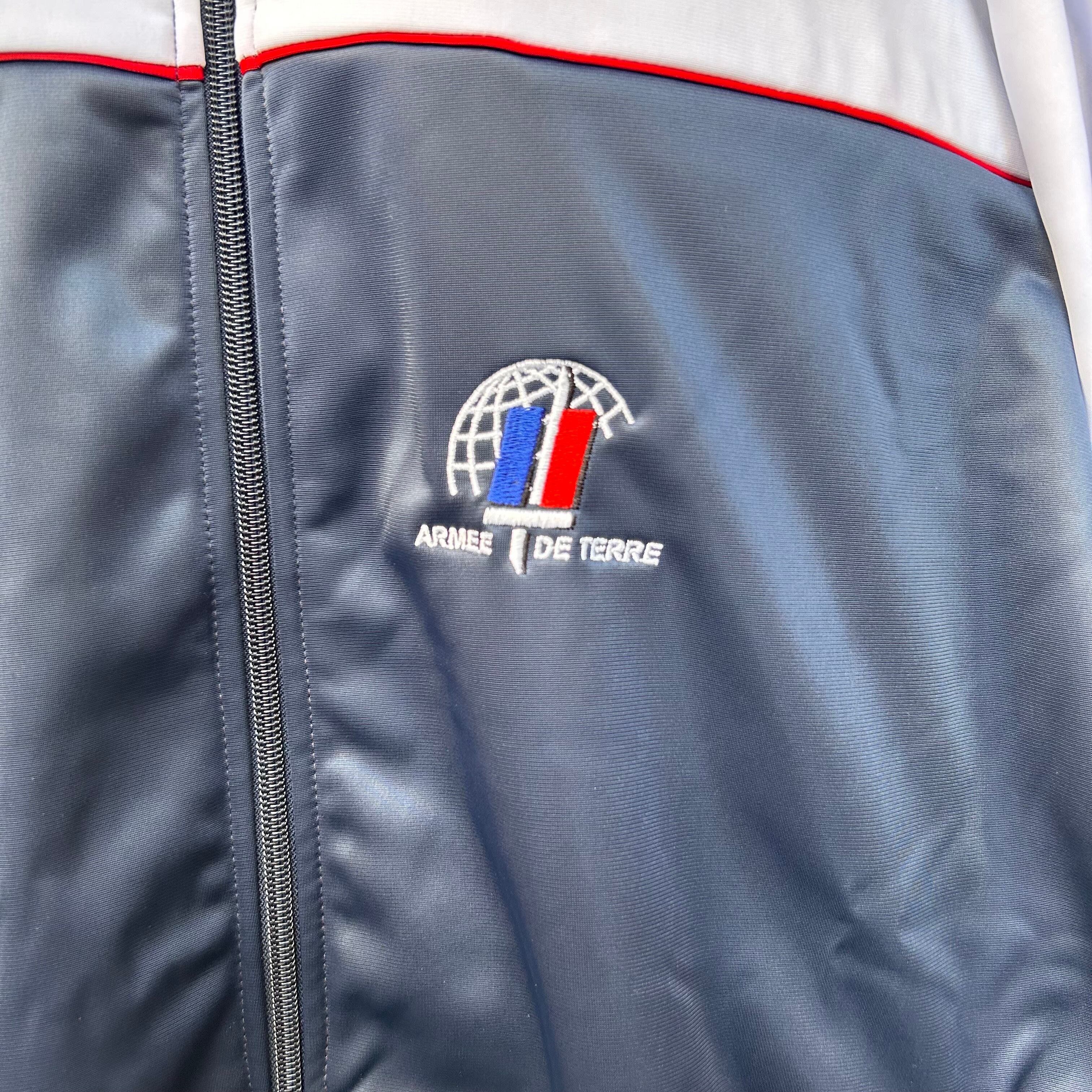 2000年代以降に採用された、フランス軍でトレーニング時などに着用されていたスポーツウェアです。表地は非常に肌触りの良い高級感のある高品質で滑らかなジャージ素材が使用されており、裏地には肌触りの良い裏起毛素材が使用されていますので、適度な伸縮性、保温性と通気性にも優れた着心地の良い1枚となっています。