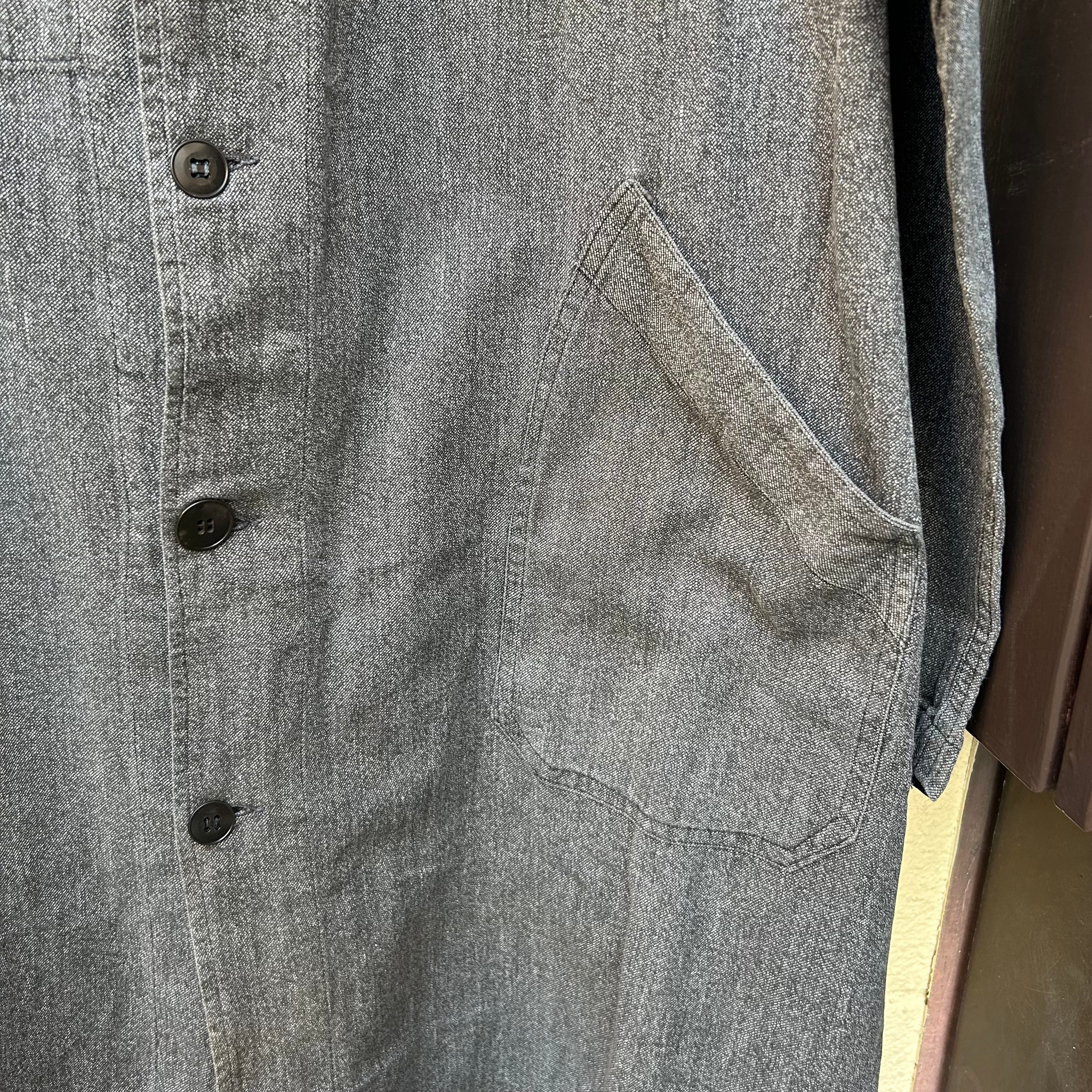1950年代 SANFOR製のブラックシャンブレーアトリエコートになります。ブラックシャンブレー特有の杢の風合いが魅力的で、しっかりとした質感ながら軽快な着用感でとても着回しやすい一着です。