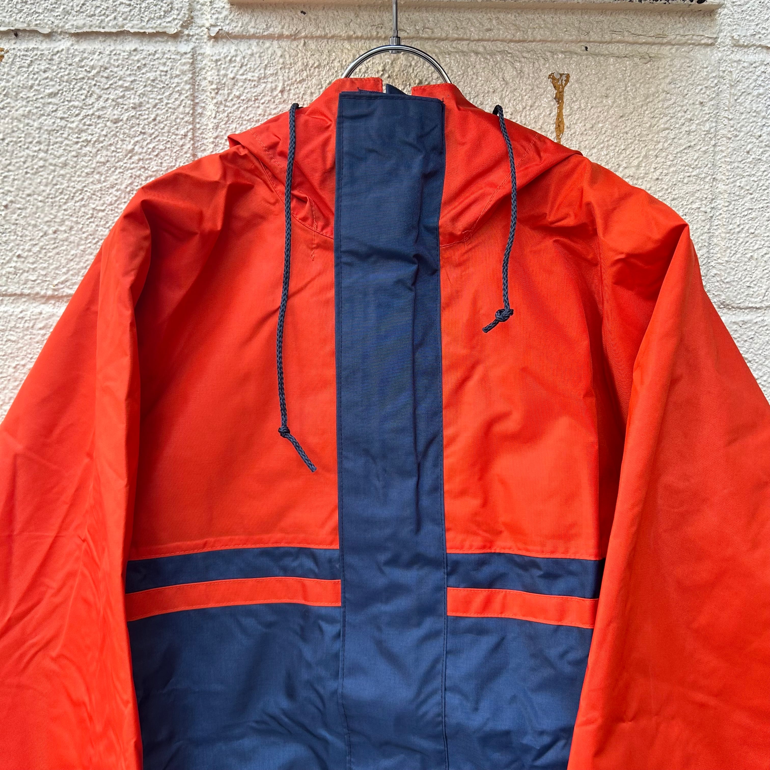 イタリア海軍(MARINA MILITARE ITALIANA)で潜水艦の乗組員などが着用するレインパーカーです。ネイビーとオレンジの大胆な切り替えが施された、高い視認性を確保したデザイン。切り替え部分はネイビーとオレンジのラインがアクセントになっています。