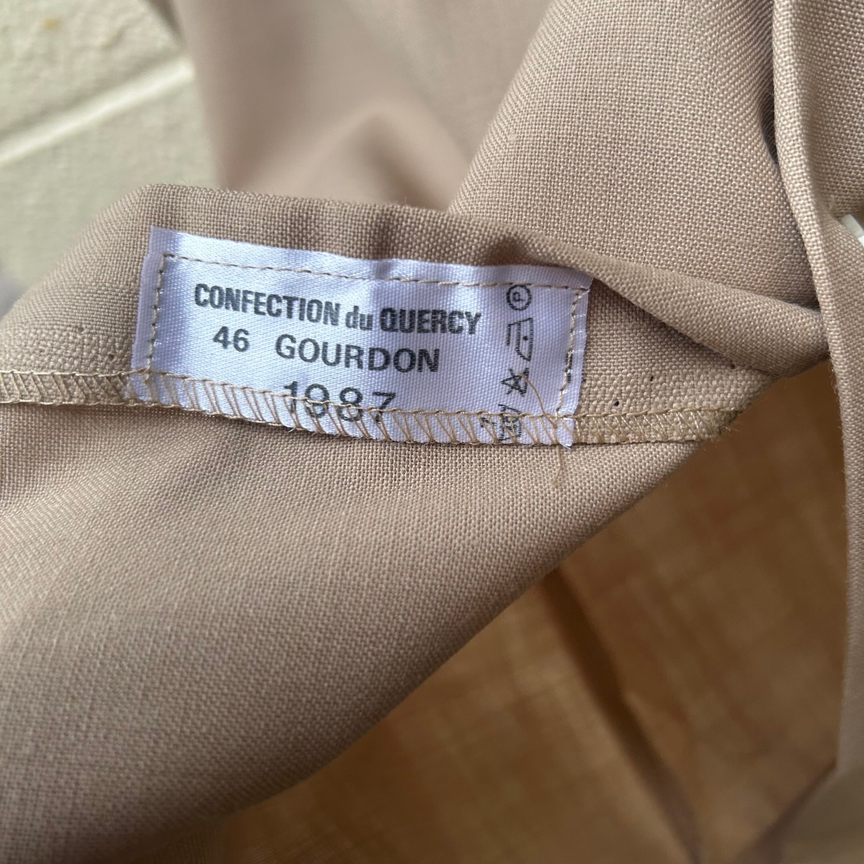 軽くて薄くウールとポリエステル製で、肌触りが良くサラッとした生地感です。 全体的な縫製はとても丁寧かつ正確で、強度も問題のない上質な仕立てです。 特に生地の端末をしっかり処理している所はさすがフランスです。